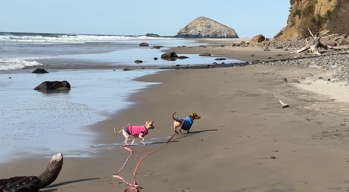 We recently took the dogs on a short beach vacation. They had a blast running on the sand. It was cold but beautifully sunny!