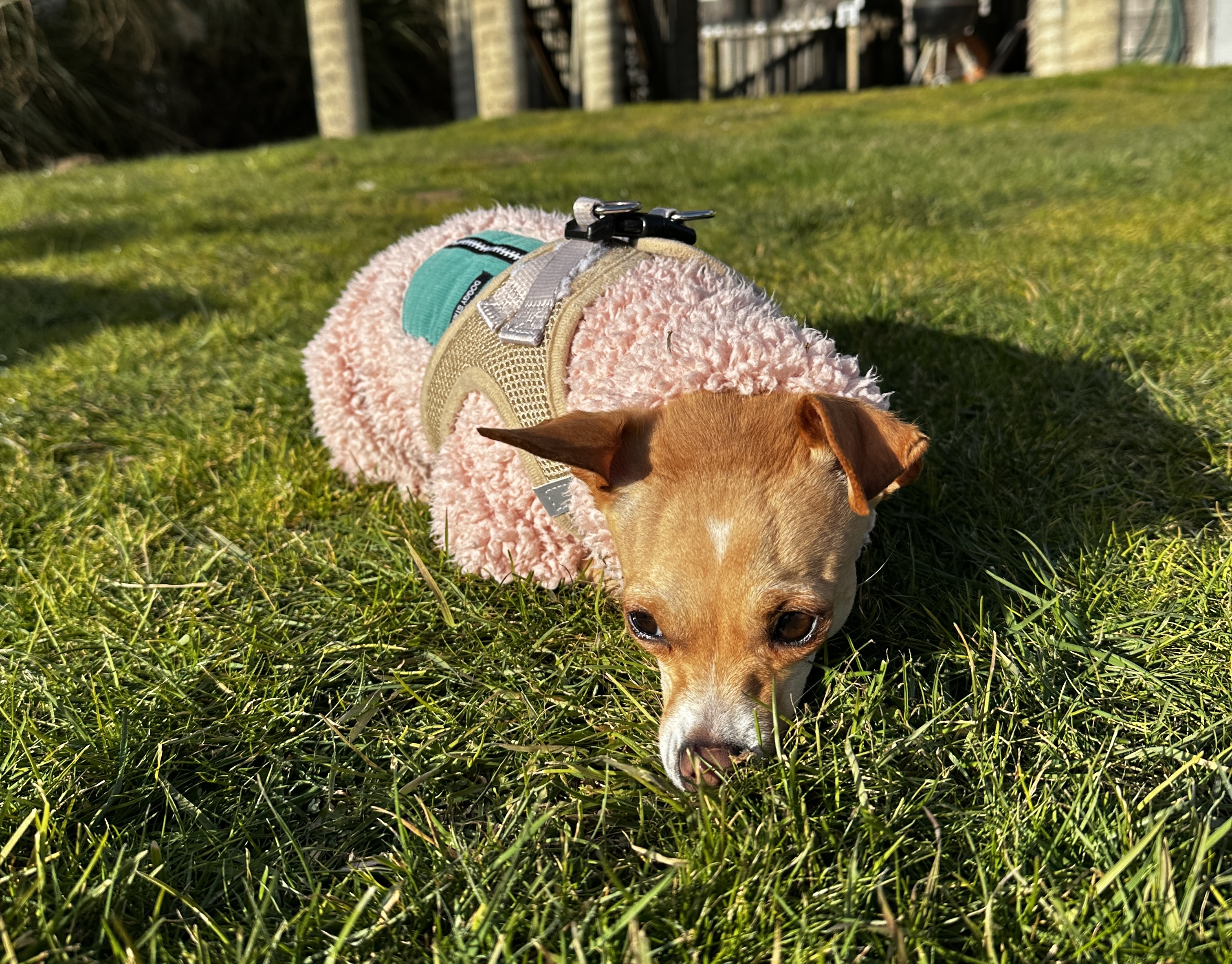 We play it safe with sea kelp, keeping doses low, and just brush the dogs’ teeth and give them chew sticks.