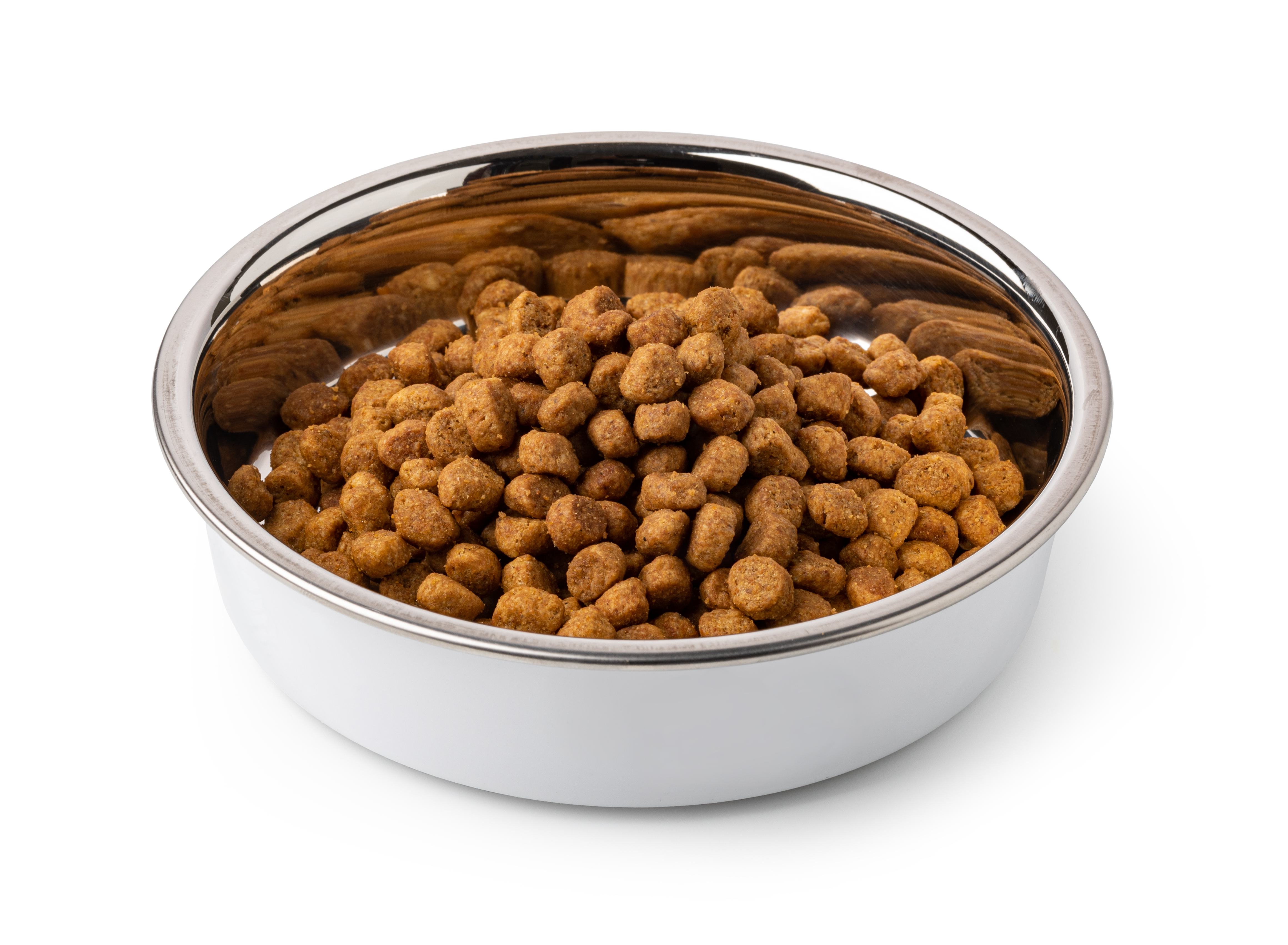 Most dry dog food is made by a process called extrusion, and is commonly called kibble. Extrusion was invented in the late 1800s to make sausage, and it’s a really simple process. Food is ground and mixed, usually into a coarse flour. The flour is then turned into a dough with supplements, additives and preservatives. The dough is then cooked, pressurized and squeezed through a shaped opening. Tons of processed foods are made this way including pasta, candies, and breakfast cereals.