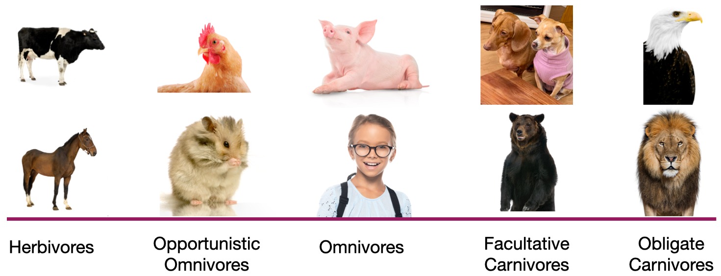 The challenge (also advantage) with opportunistic omnivores, strict omnivores and facultative carnivores is that there is no clear line between them. Even different dog breeds have varying ability to digest carbohydrate. So while many dogs can and do digest carbohydrate well, some breeds and individuals are unable to thrive on high carbohydrate diets and should avoid kibble all together.